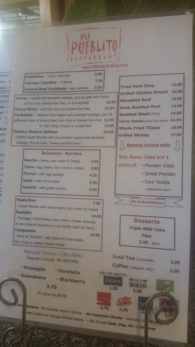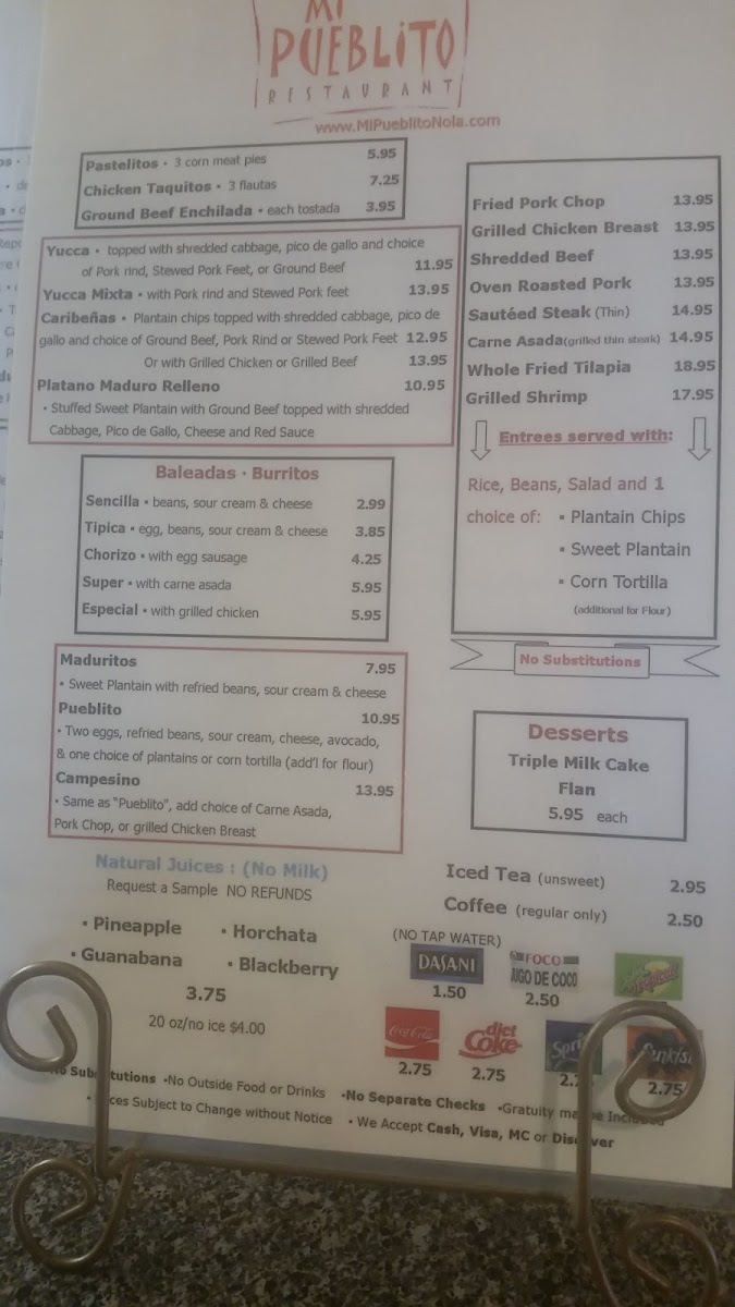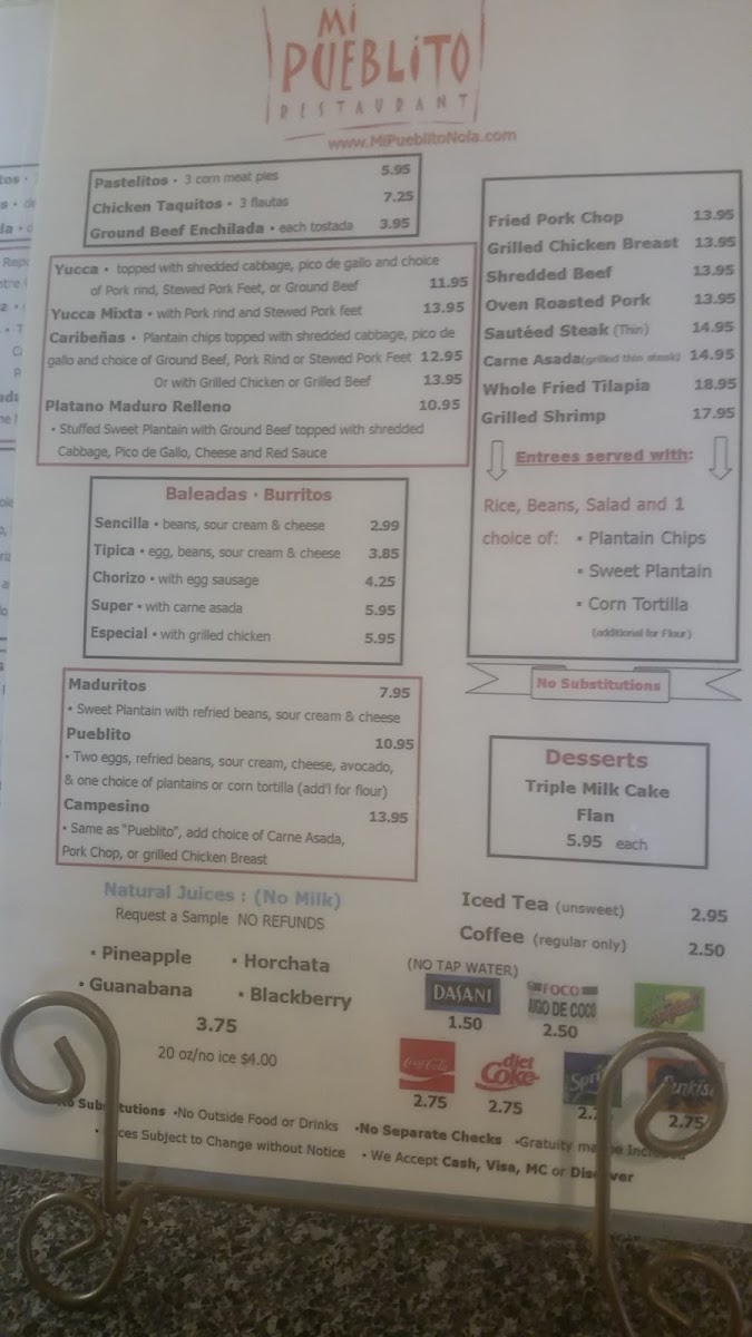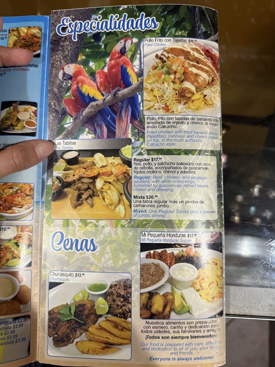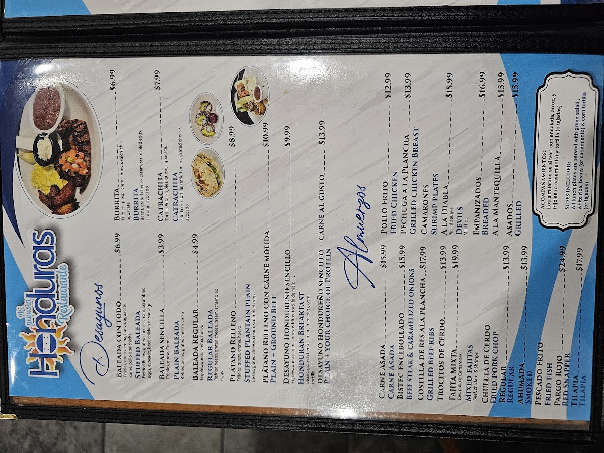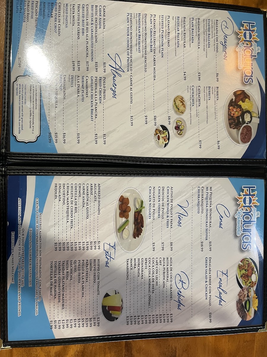 Mi Pequeña Honduras Restaurant Menu